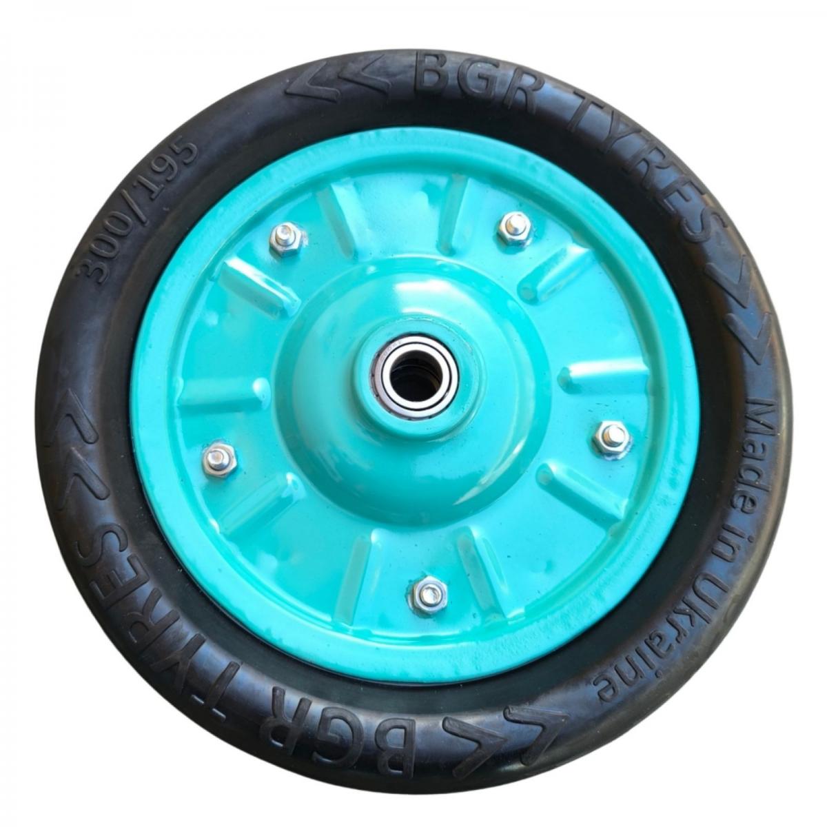Колесо Гусматик (бескамерка) 300 мм под ось 20 мм для тачки в сборе под 104 подшипник колесо литое.