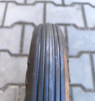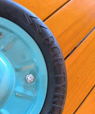 Такая стойкость к большим нагрузкам обеспечивают современные и надежные материалы диска и шины. Диск колеса сплошной и изготовлен из листовой стали методом штамповки, покрытой полимерной краской (цвет – синий), а проколобезопасная покрышка из черной эластичной резины.