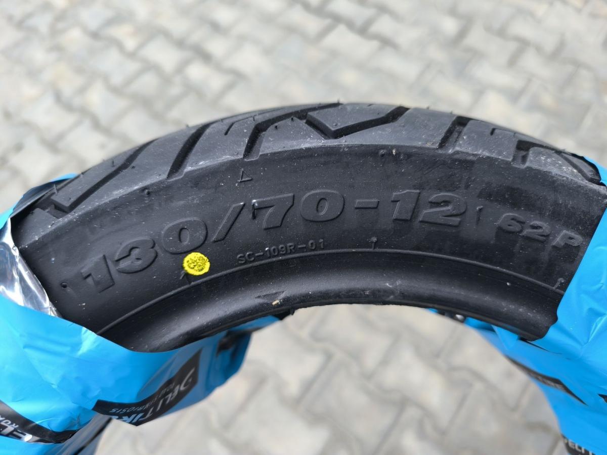 Бескамерная покрышка производства Индонезия Deli Tire в размере 130/70-12 на мотороллере с маркировкой рисунка протектора SC-109. Эта шина бескамерна, но можно ставить и в комплекте с камерой. Качественная покрышка для скутера с дорожным рисунком обеспечит надежную езду и максимальное сцепление на разных типах дорог. Применяется на разные модели японских и китайских скутеров с диаметром диска 12 дюймов.